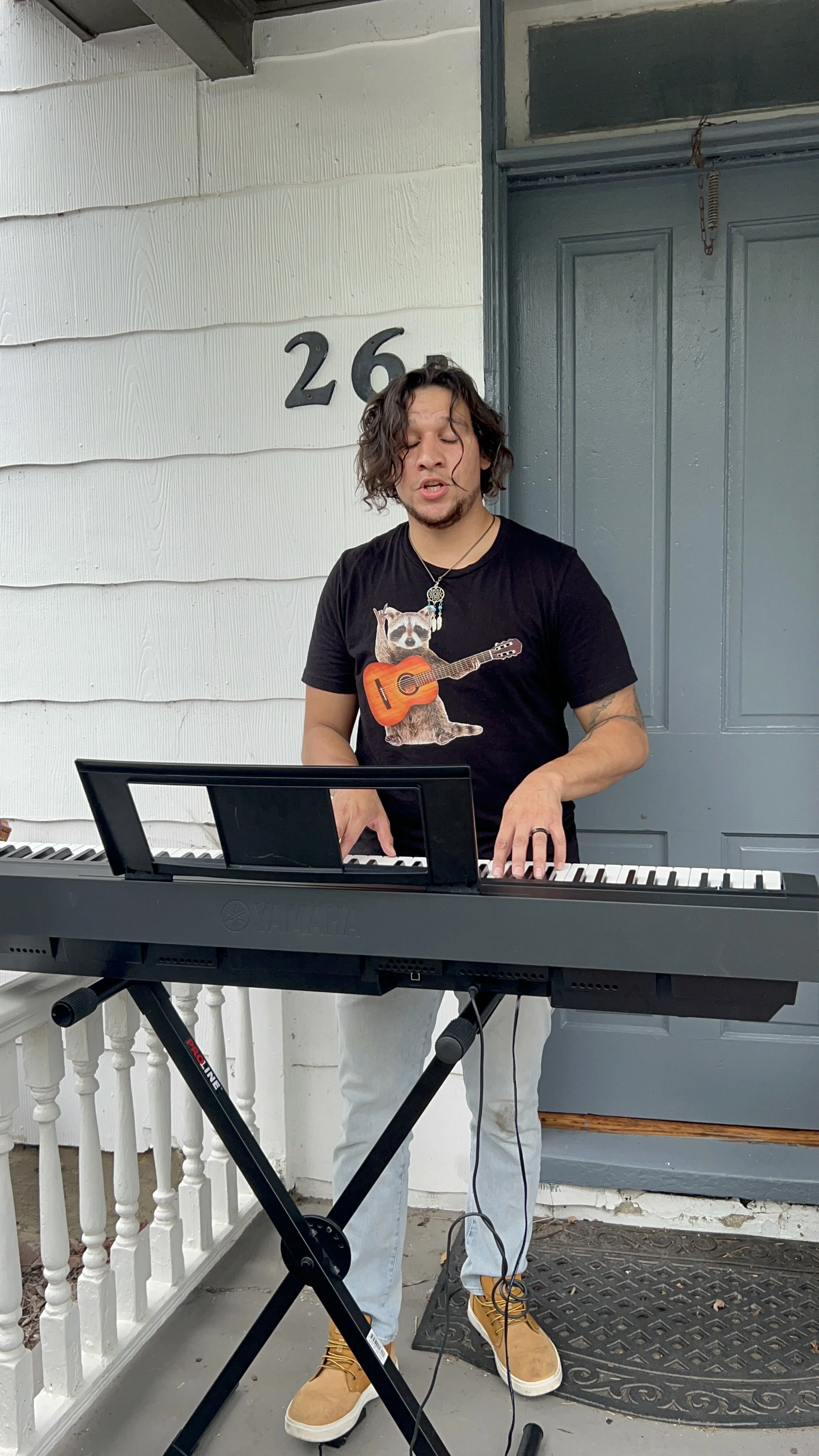 Also, I like to play music — and I have a raccoon t-shirt in one of the pictures below!